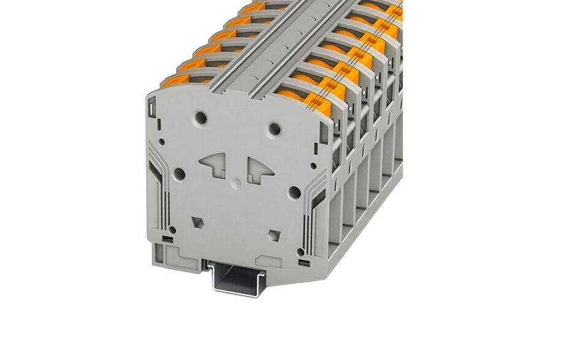 Borne de corriente, tensión nominal: 1000 V, corriente nominal: 150 A, número de conexiones: 2, número de polos: 1, tipo de conexión: Conexión PowerTurn, 1er piso, sección: 10 mm2 - 70 mm2, clase de montaje: NS 35/15, color: gris