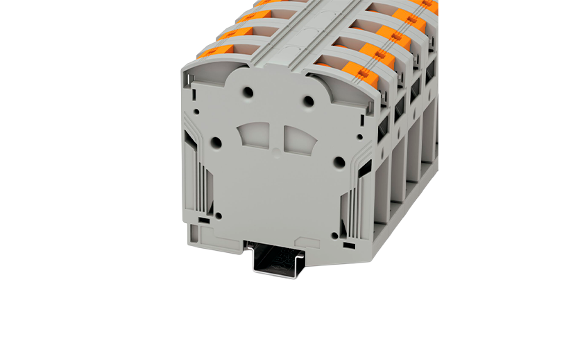 Borne de corriente, tensión nominal: 1000 V, corriente nominal: 309 A, número de conexiones: 2, número de polos: 1, tipo de conexión: Conexión PowerTurn, 1er piso, sección: 95 mm2 - 185 mm2, clase de montaje: NS 35/15, color: gris