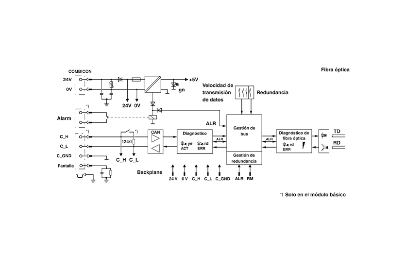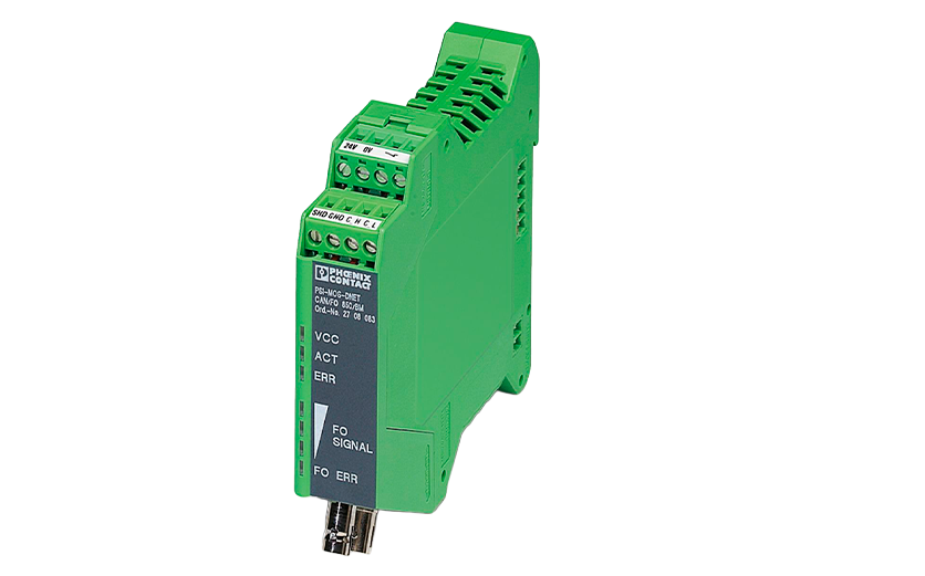 Convertidor de fibra óptica, con diagnóstico óptico integrado, para DeviceNet™, CAN, CANopen® hasta 800 kBit/s, módulo básico, interfaces: 1 x CAN, 1 X alarma, 1 x fibra óptica (BFOC), 850 nm, para cables PCF/de fibra de vidrio (multimodo)