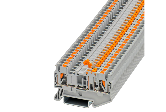 Borna interrumpible por cuchilla, tensión nominal: 400 V, corriente nominal: 20 A, tipo de conexión: Conexión push-in, Sección de dimensionamiento: 2,5 mm2, sección: 0,14 mm2 - 4 mm2, montaje: NS 35/7,5, NS 35/15, color: gris
