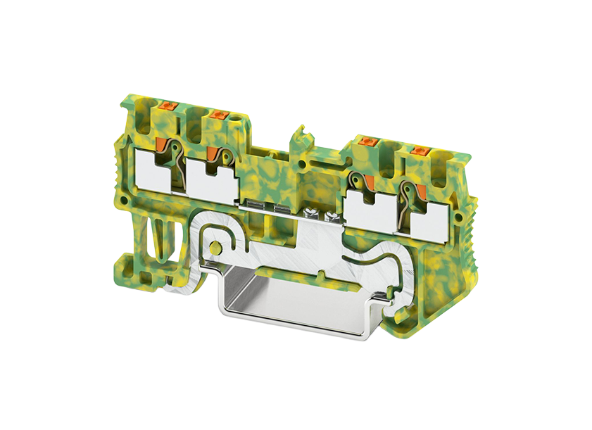 Borne de protección, número de conexiones: 4, tipo de conexión: conexión push-in, 1 nivel, sección: 0,14 mm² - 1,5 mm² , tipo de montaje: NS 35/7,5, NS 35/15, color: verde-amarillo