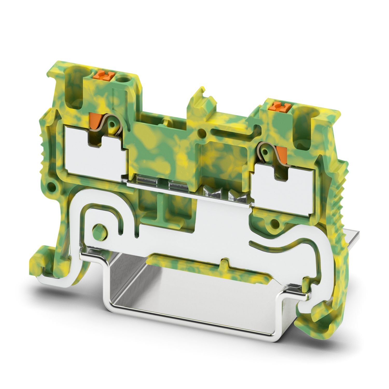 Bloque de terminales de conductor de protección, número de conexiones: 2, método de conexión: Conexión push-in, 1 nivel, sección transversal: 0,14 mm² - 1,5 mm² , tipo de montaje: NS 35/7,5, NS 35/15, color: verde-amarillo