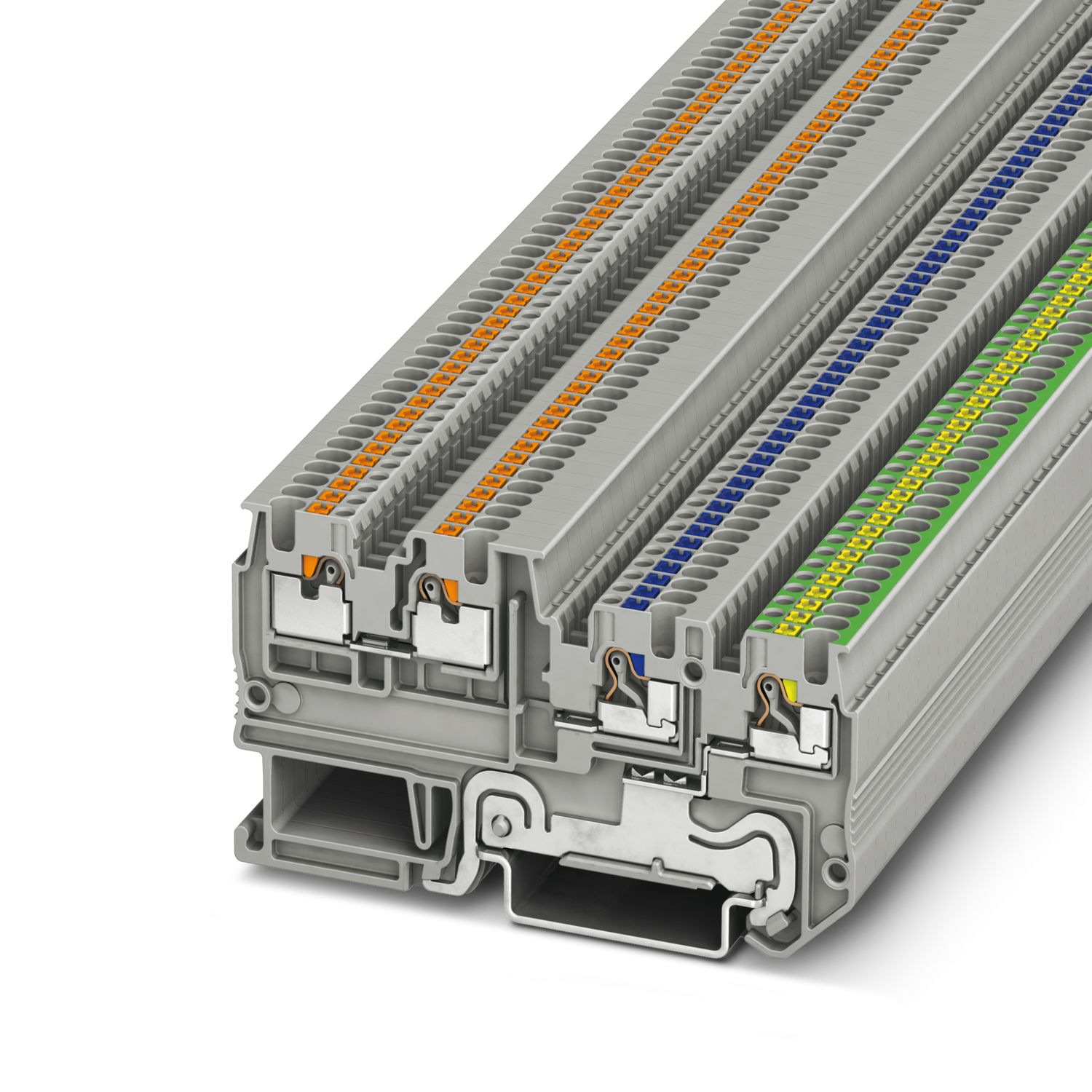 Borna de actuador/sensor de proximidad, con función de conductor de protección a tierra, tensión nominal: 250 V, corriente nominal: 13,5 A, número de conexiones: 4, tipo de conexión: Conexión push-in, Sección de dimensionamiento: 1,5 mm2, sección: 0,14 mm2 - 1,5 mm2, clase de montaje: NS 35/7,5, NS 35/15, color: gris