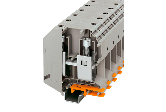 Bloque de terminales de alta corriente, tensión nominal: 1000 V, corriente nominal: 309 A, número de conexiones: 2, método de conexión: conexión por tornillo, sección transversal nominal: 150 mm² , sección transversal: 35 mm² - 150 mm² , tipo de montaje: NS 35/15, NS 32, color: gris