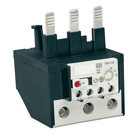 RW117-1D3-U112. Los relés de sobrecarga RW protegen las cargas contra el calentamiento indebido, causado por sobrecargas o por falta de fase. Cuando tenemos una sobrecarga o una falta de fase en el circuito, ocurre un aumento en la corriente del motor. Montaje directo a los contactores o en base individual. Los relés de sobrecarga RW fueron proyectados para la protección de motores trifásicos y monofásicos en CA, así como para motores en CC. Clase de disparo 10. 3 Polos IP20